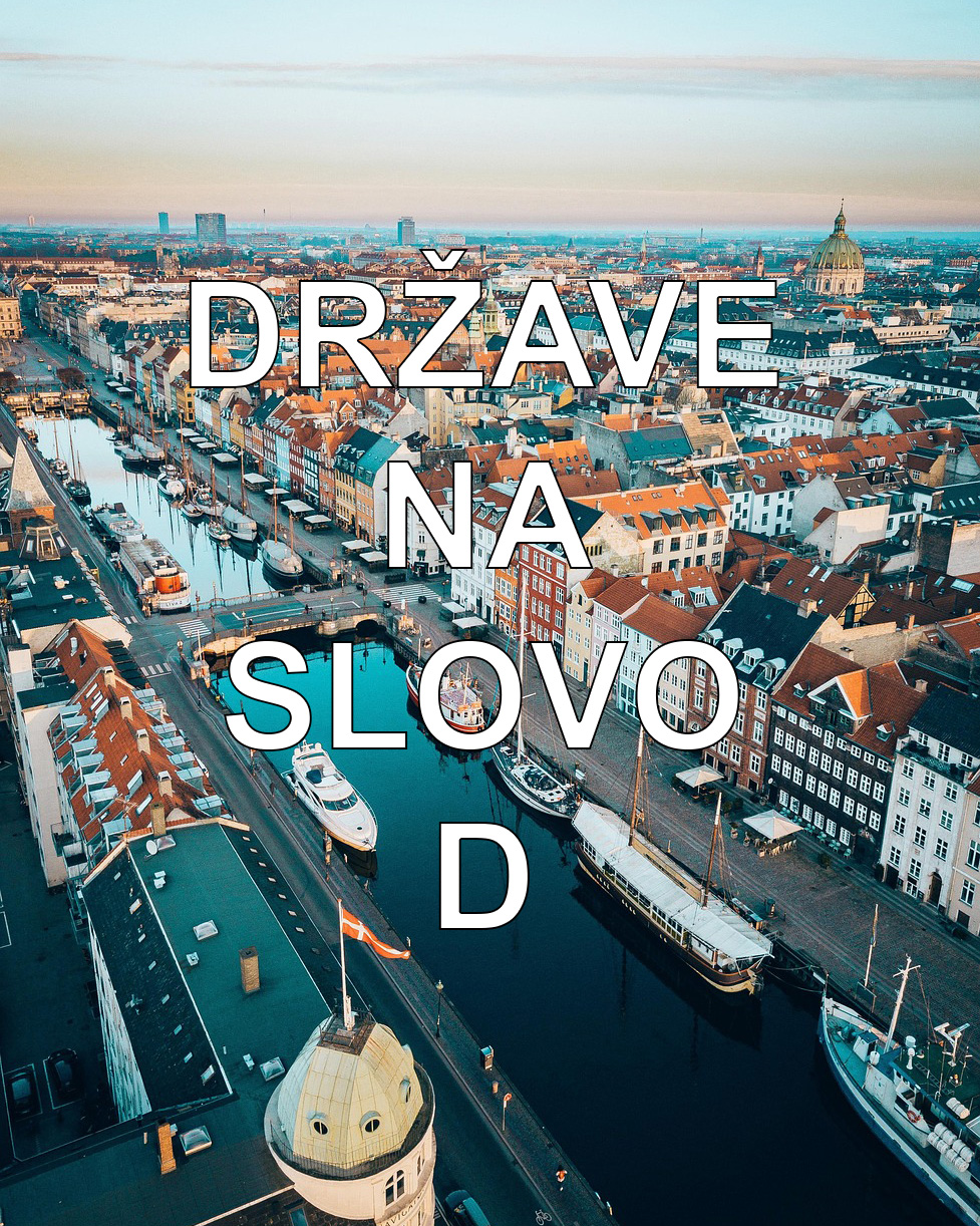 **(Objašnjenje ostaje isto, bez Džibutija)** Slovo „D“ se nalazi na početku imena nekoliko poznatih država. Danska je ime germanskog porekla („marka/granica Dana“). Dominikanska Republika i Dominika su nazvane po Svetom Dominiku ili po danu otkrića (nedelja – *dies Dominica*). Demokratska Republika Kongo koristi pridev „demokratska“.